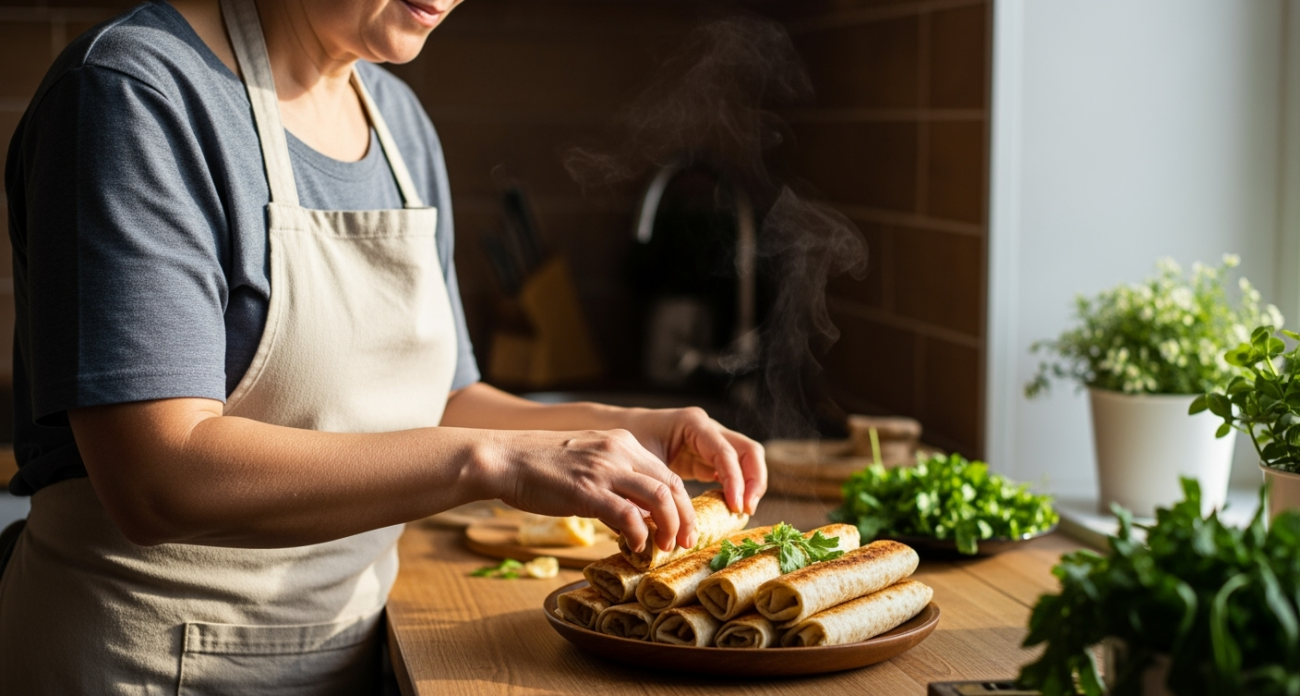 Подготовительный этап начинается с нарезки лаваша на одинаковые прямоугольники. От того, насколько ровными будут заготовки, зависит аккуратность будущих трубочек. На каждый такой прямоугольник кладут примерно две столовые ложки начинки, которую слегка придавливают. Затем края лаваша подворачивают внутрь и аккуратно скатывают в рулет. Перед жаркой каждую трубочку обмакивают во взбитое яйцо - это гарантия золотистой корочки и аппетитного хруста.